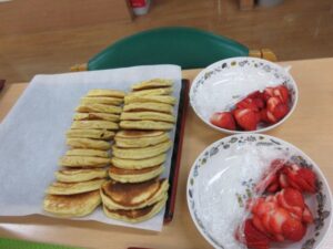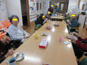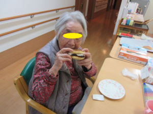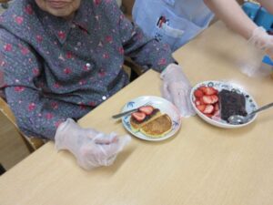 完成したパンケーキを前に『おいしそう』と笑顔があふれ、普段より会話も弾み職員も一緒に楽しい時間を共有させていただきました😉