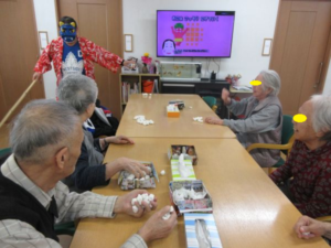 鬼に向かって、笑顔で豆を投げる方や、少し照れながら参加される方もいらっしゃり、それぞれのペースで楽しまれていました😊