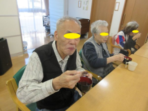 豆まきの後は、皆さんが大好きなおしるこのおやつの時間です🍵