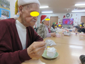 おやつは、職員手作りのクリスマスケーキを召し上がっていただきました🍰