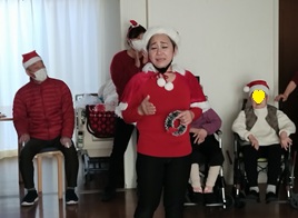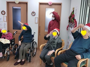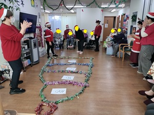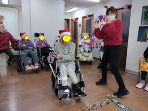 今年のクリスマス会はツリーを目指して得点を競うゲームをしました。